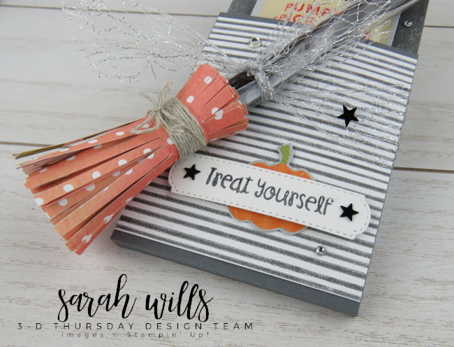 Hello Everyone! I’m so glad you are visiting with me today. Sarah Wills from Sarah’s Ink Spot is our team designer this week and I love her little treat holder. Look at this: