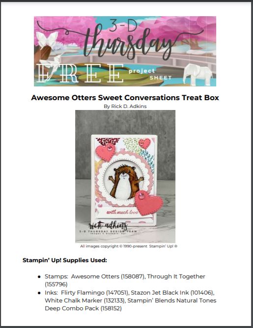 Hello, good morning and welcome to 3D Thursday. Rick Adkins is our designer this week with a Valentines treat box. I love how he incorporated the Awesome Otters stamp set for this adorable box. Did you know you can earn this stamp set for FREE during Sale-A-Bration?