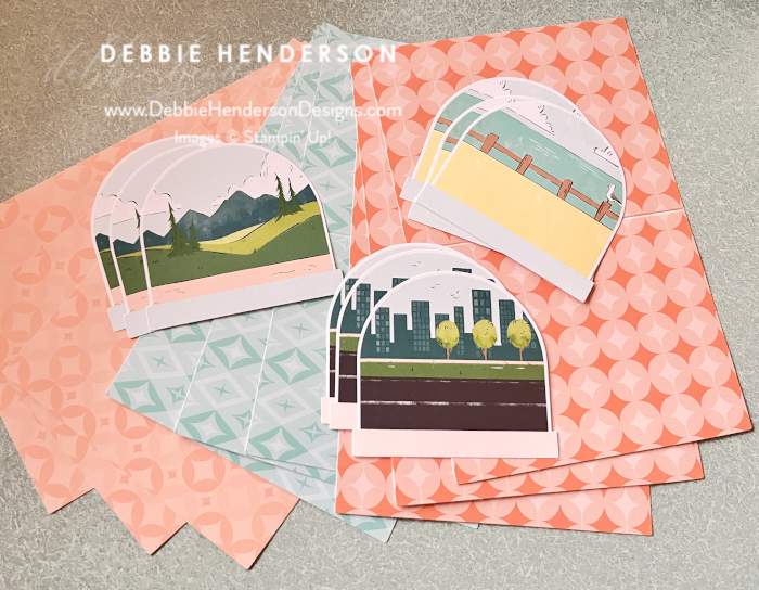I have a really neat card kit to show you today. The Adventure Awaits Card Kit includes all of the pieces and layers to create 9 cards. The first set of 3 are assembled per the kit instructions and the other 6, I created alternative designs for.