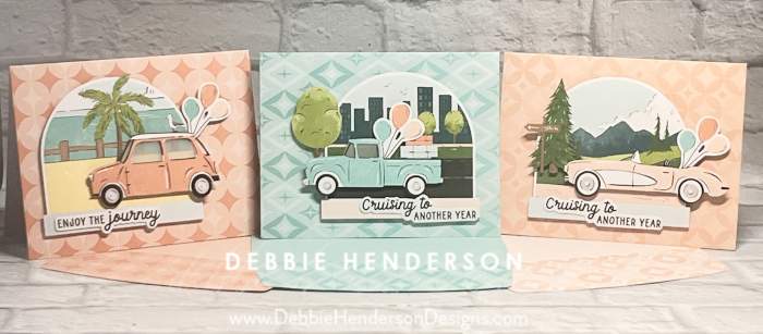 My next set of cards uses the same kit contents but I changed the orientation of the card bases and changed up the sceneries for each vehicle: