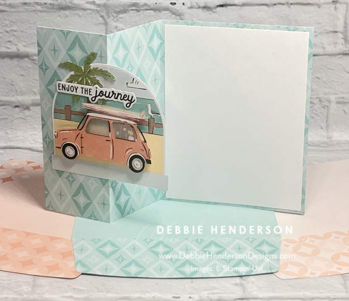 I did add an additional layer of Basic White Cardstock to the inside of each card that measures 5-1/4 x 4. I added a 2nd score line on each card base at 2-1/8″ and folded with the printed pattern facing the front on all 3 sections: