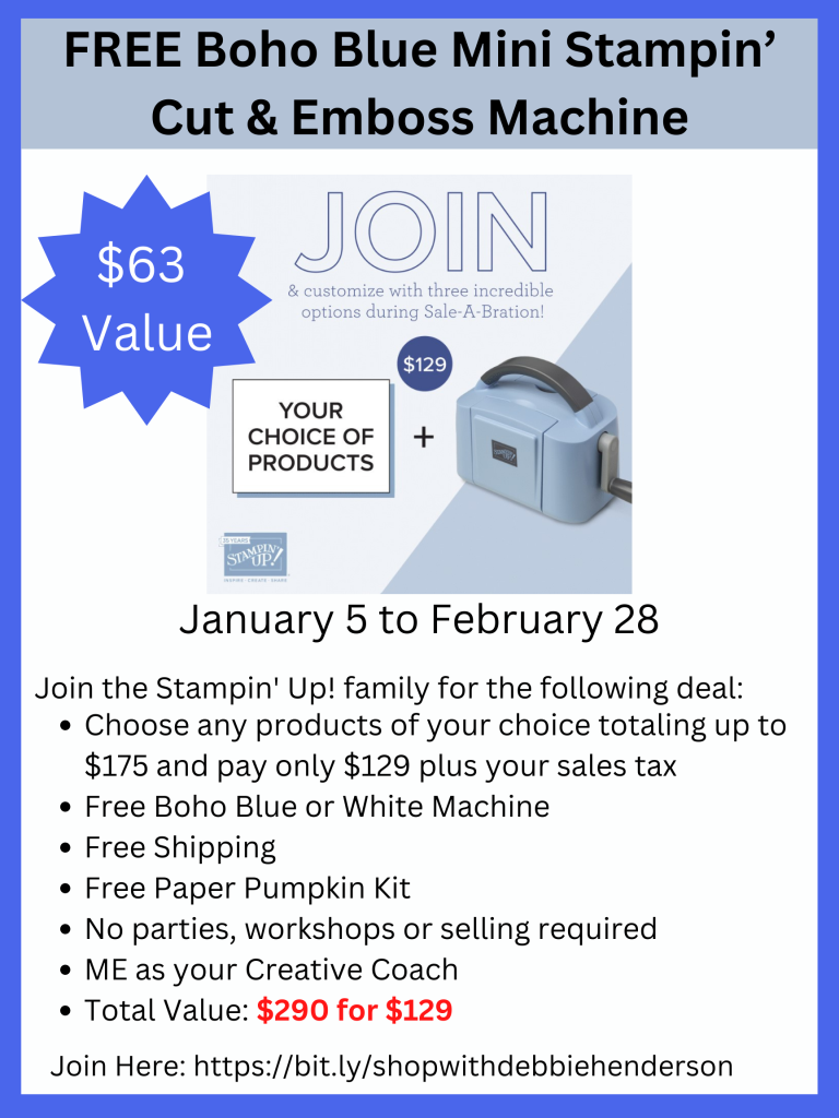 - JOIN my Stampin’ Up! team and earn the following for FREE: