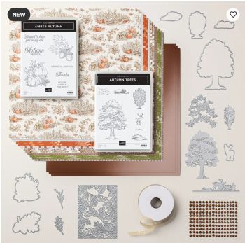 Stampin’ Up!’s AUTUMN TREES BUNDLE contains classic autumn imagery…trees, leaves, and deer to create stunning fall projects! We’ve combined this AUTUMN TREES BUNDLE with a couple ink techniques, so we know you’ll enjoy this fun Collection of cards! We’ve used accents of the EARTHEN TONES METALLIC PAPER and AUTUMN TOILE 12×12 DESIGNER PAPER to create a timeless elegance for this harvest season and all year round! In our AUTUMN TREES COLLECTION, you’ll get step-by-step tutorials for EIGHT cards…three of them using fun ink techniques!