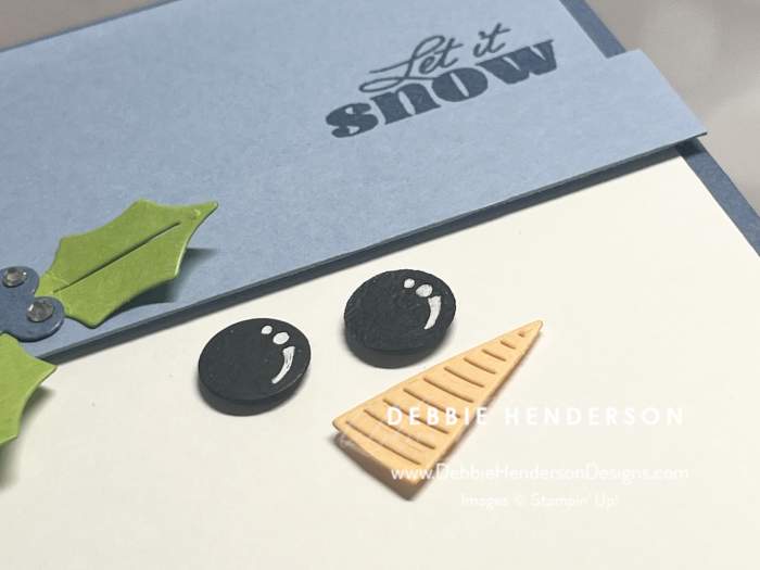 • Sentiment: Stamp the sentiment above the brim of the hat on the right with Misty Moonlight Ink.