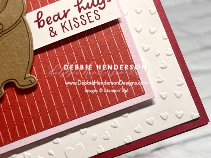 - Tools & Accessories: Valentine Kisses Dies, Hearts Of Love Embossing Folder, Stampin’ Dimensionals