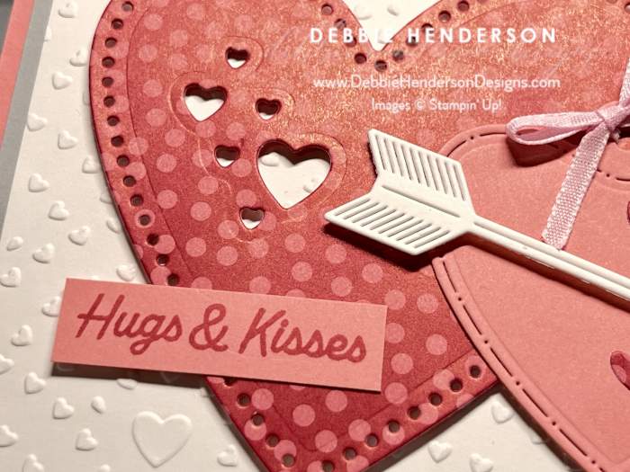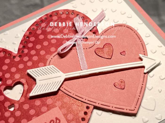 I truly like all of the “extras” in the die set. The little diecut hearts, several different sizes of arrows and look at the pretty details along the edges of both hearts: