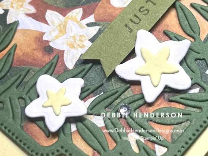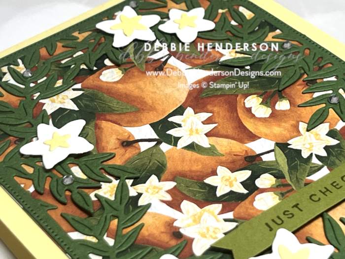 - Tools & Accessories: Citrus Blooms Dies, Mini Stampin’ Dimensionals, Paper Snips, Rhinestone Basic Jewels