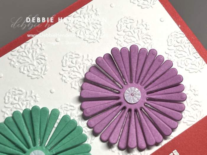 - Tools & Accessories: Round We Go Dies, Damask Designs Embossing Folder, Starburst Sequins, Stampin’ Dimensionals, Mini Stampin’ Dimensionals, Heat Tool, Basics Embossing Powders, Paper Snips