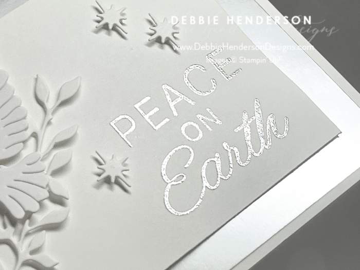 - Tools & Accessories: Peace On Earth Dies, Heat Tool, Metallics Embossing Powders, Stampin’ Dimensionals
