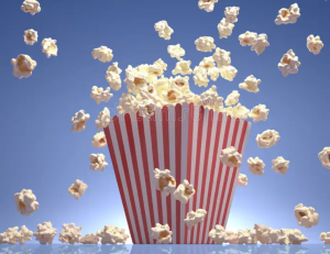I added a layer with the Beautiful Bokeh Designer Paper. I also used 1/4″ strips of cardstock to create my own popcorn box and I’ll show you how!