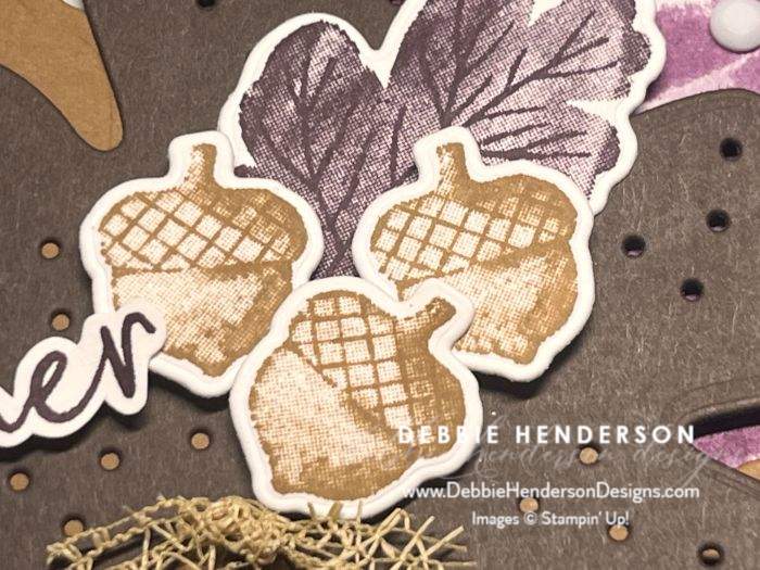 - Acorns: Stamp three acorns with Pecan Pie Ink.