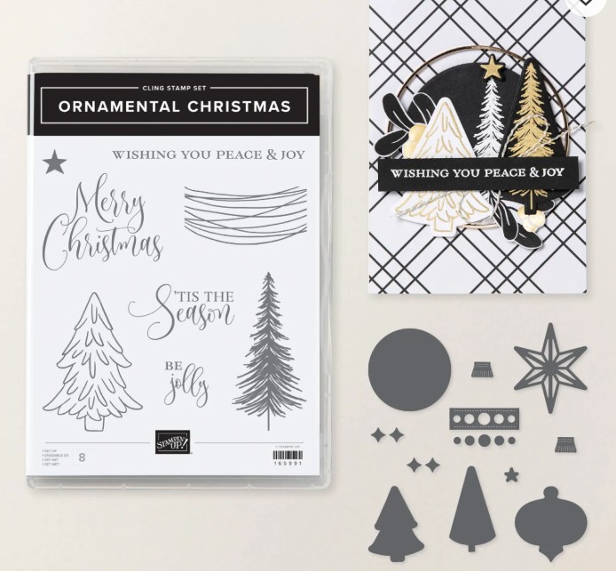 Be a little bold this Christmas stamping and accessorizing with the contemporary designs in the MODERN CHRISTMAS SUITE of products! You are sure to be on trend with the ORNAMENTAL CHRISTMAS BUNDLE and its’ classic trees, stars and ornaments designs! We’ve combined the ORNAMENTAL CHRISTMAS BUNDLE with the gold foil accents in the MODERN CHRISTMAS 12×12 DESIGNER PAPER for eye-catching designs! You’ll get step-by-step tutorials for SIX projects…FOUR cards and TWO gift card holder ideas perfect to showcase the beauty of the season.
