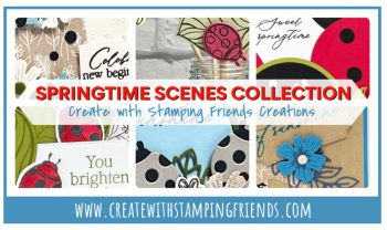 Hurray for spring! You can celebrate with Stampin’ Up!’s new SPRINGTIME SCENES BUNDLE with stamping ladybugs, leaves and flowers on your paper projects in a rainbow of colors! The circle borders and cheerful sentiments add just the right touch of whimsy! We’ve combined the SPRINGTIME SCENES BUNDLE and the DELICATE DREAMS 12×12 DESIGNER PAPER that will give your projects a hint of bronze foil shine! You’ll get step-by-step tutorials for SIX projects…4 regular cards and 2 darling Easter Favors for your table or to give to family or friends!