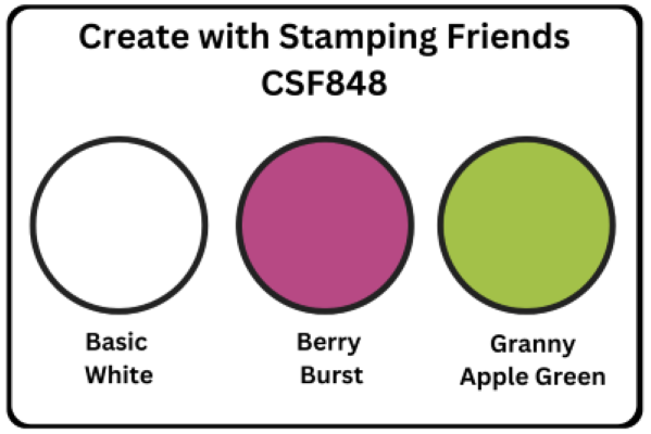 • Cardstock: Berry Burst, Granny Apple Green, Basic White