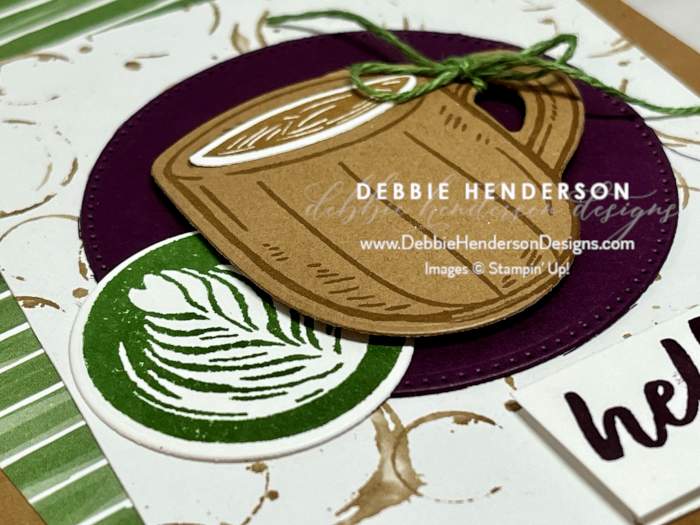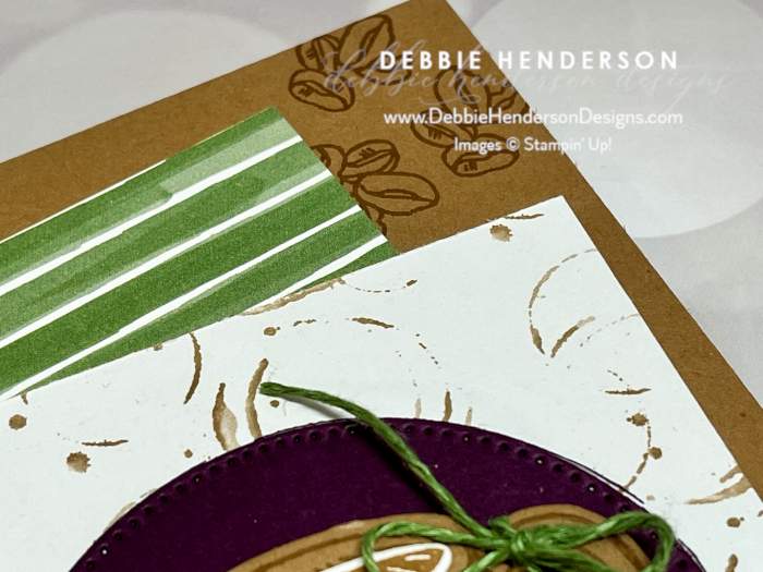Do you spy the cute little coffee beans I stamped on the card base layer? And a touch of twine finished off my card nicely!
