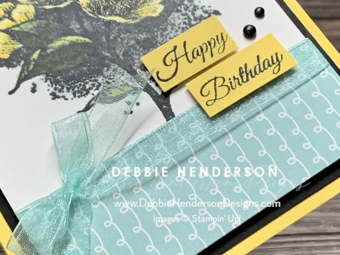 - Sentiment: Stamp the sentiment on Daffodil Delight Cardstock using Tuxedo
