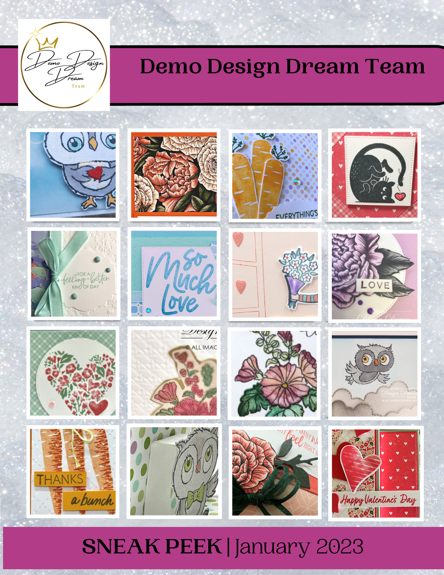 I created this adorable card for the Demo Design Dream Team for our January Project Sheets. We have a team of 16 and we compile free project sheets for our customers each month. If you ordered from me during the month of January, I emailed you the free project sheets a few days ago as a thank you.