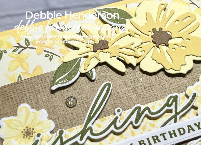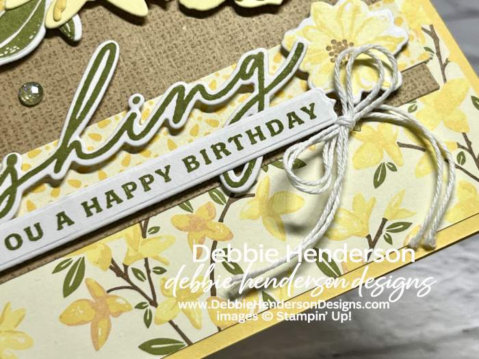 We used the Delightful Wishes Bundle with a little bit of twine, bling and designer paper. The diecut flowers are so gorgous with all of the layers: