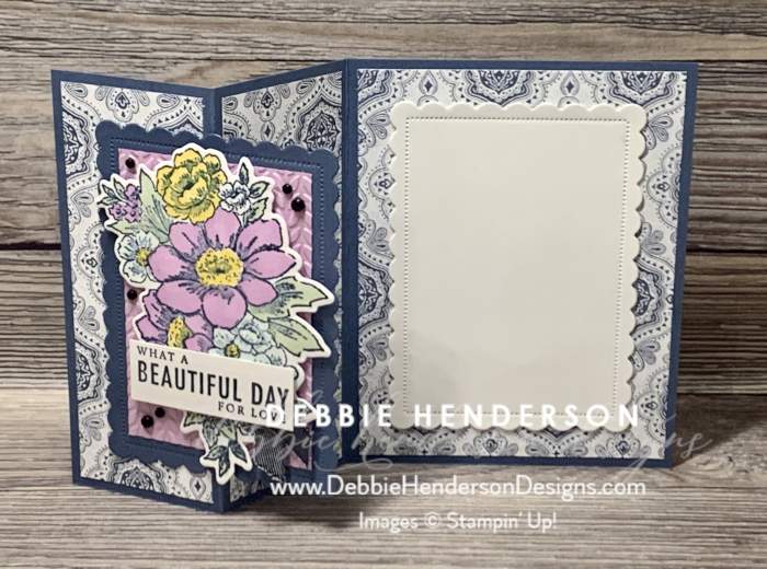 A few months ago, demonstrators attended a live online Stampin’ Up! event called OnStage@Home. We used the Heart & Home Suite and we all created some beautiful cards that I showed in this post: ONSTAGE CARDS. Once our event was over, I sent the girls on my team, card kits and we stamped these three cards together as a Zoom Class. We had a lot of fun. Here are more photos of the details of each card: