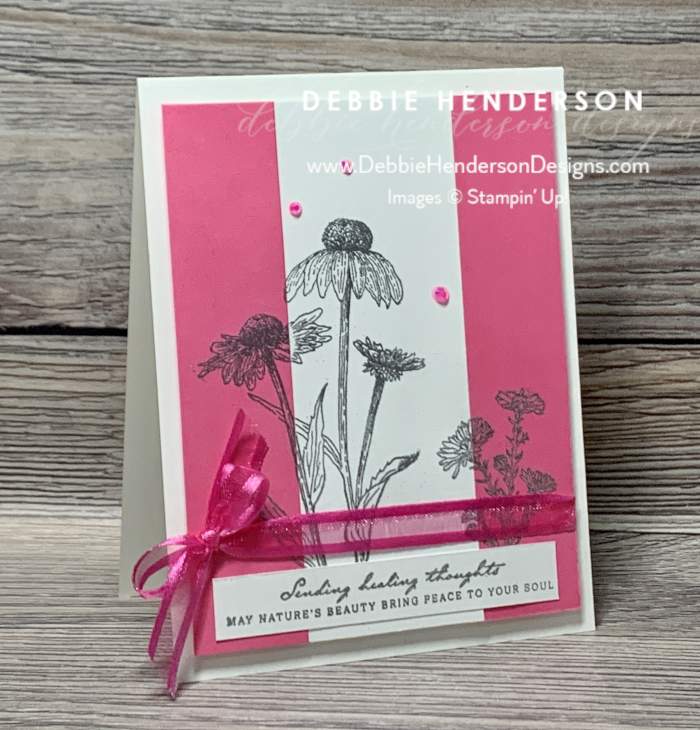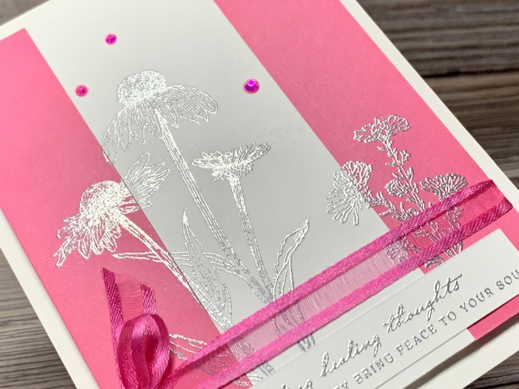 Oh how fun! I created the Triple Negative Technique three times! I have a funny story that I talk about in my video as you watch. You’ll notice that one card uses a different stamp set then the two others. Isn’t the colored cardstock pretty when coordinated with the same ribbon color? That’s what I love about Stampin’ Up! Beautiful coordinating colors!