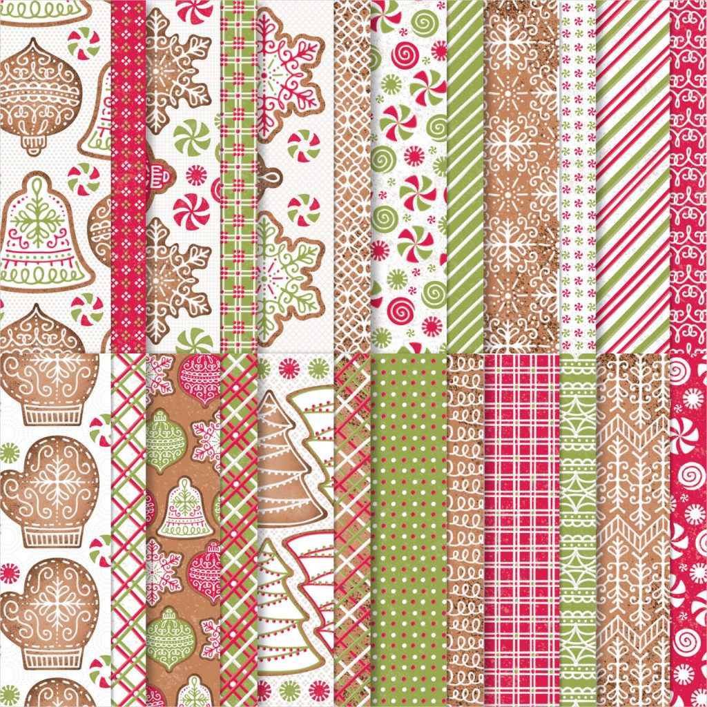 - Gingerbread & Peppermint Designer Paper, 1/2 package (24) 6″ x 6″ sheets