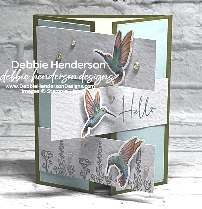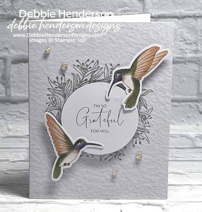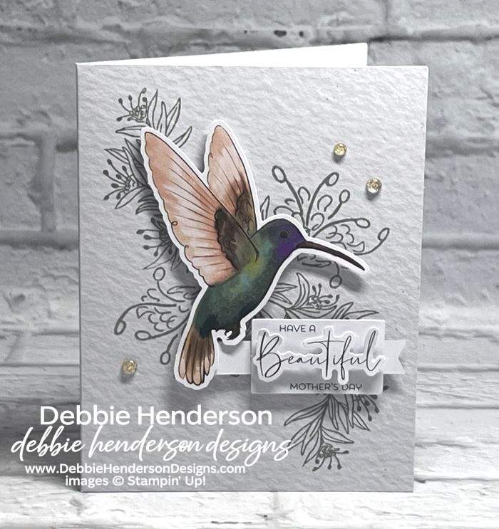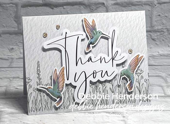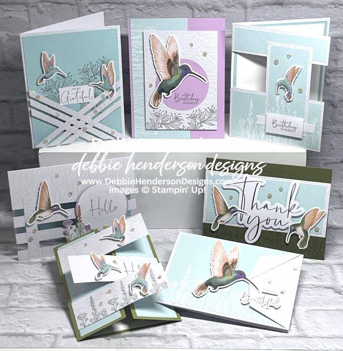 If you love hummingbirds, this kit was for you! The March kit was also an anniversary kit and we all received a bonus stamp set……so that means two stamp sets were included in our box.
