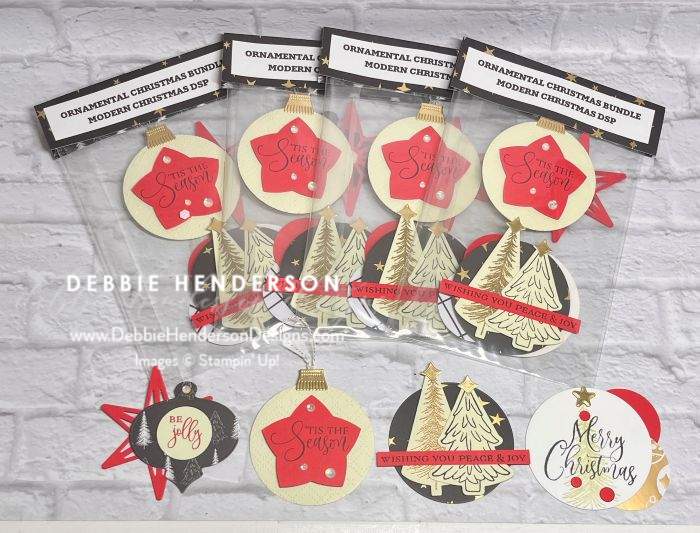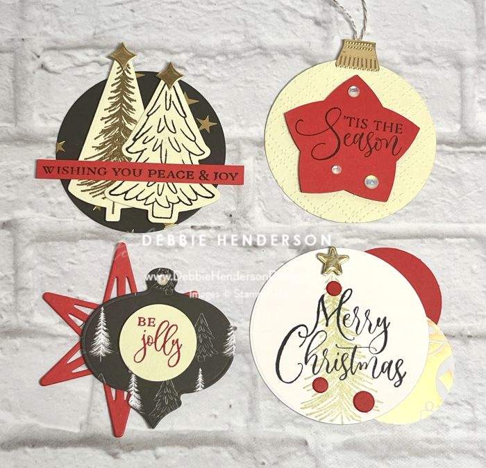 You can see close-ups of each card candy below and once I had them all created, I added one Stampin’ Dimensional on the back of each. I then cut a window sheet to fit in a cello bag and added 2 card candies on each side of the window sheet. Once that was completed, I put the window sheet inside a cello bag and created a topper for my bags. You can see all 4 of my card candies below and also both sides of my window sheet where I attached them: