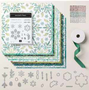 I include project sheets for all 3 cards and send them to each of my team members so they can use them for personal use, or to help with a class they can host. This month was all about the Elegant Pine Snowflakes Suite: