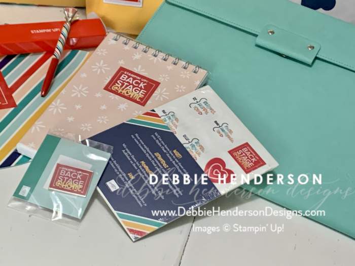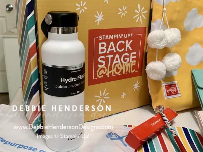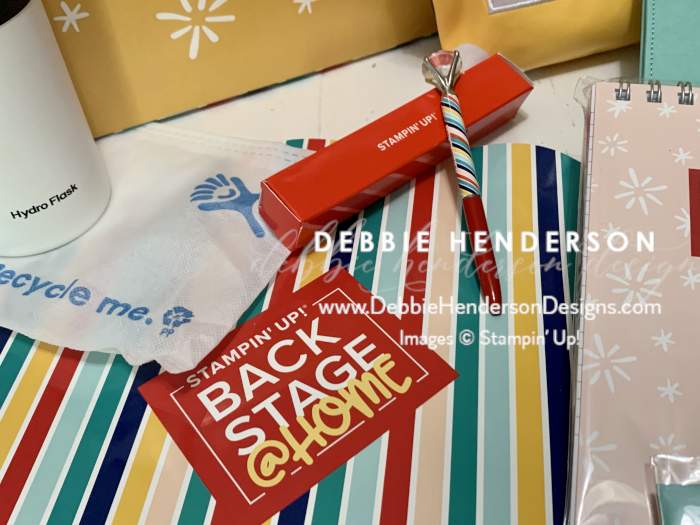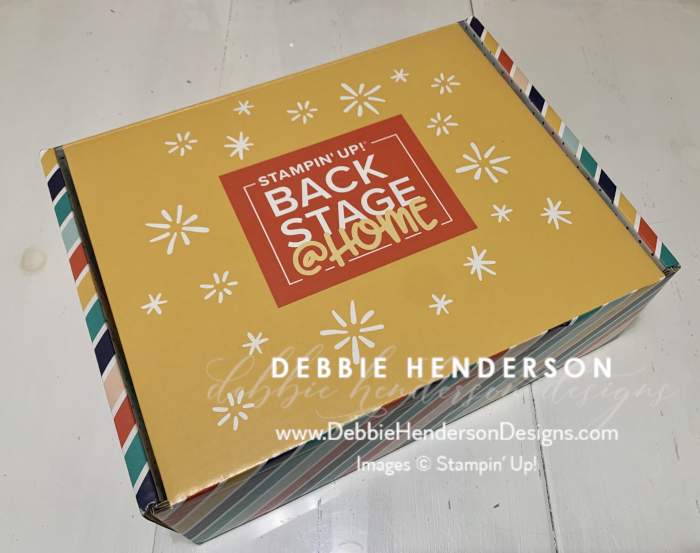 A big, beautiful box arrived in my mail and because I didn’t want to ruin the surprise for other demonstrators, I am posting after our BackStage@Home event has happened. We met online for 3 days and got to connect with our fellow demonstrators. Take a peek at what was inside my box: