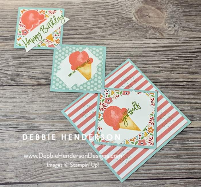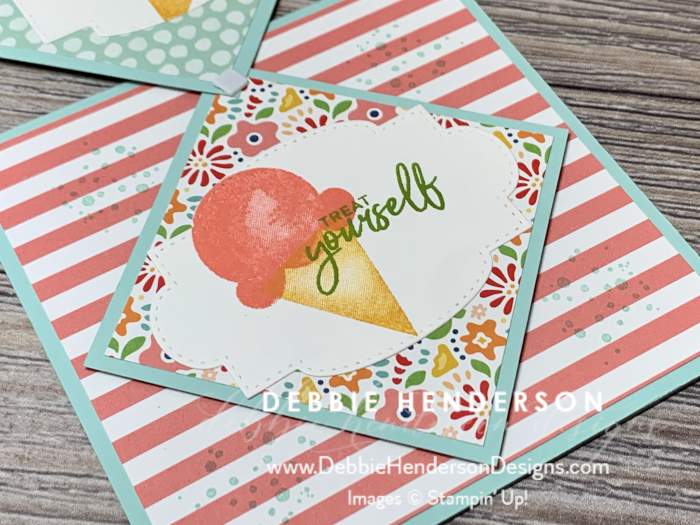 I used the Sweet Ice Cream Bundle which includes the stamp set and punch. You can find my video below for both cards: