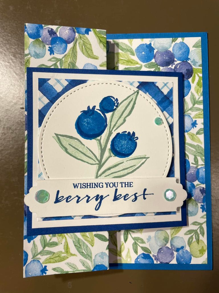 I started something new called Mystery Stamping with my team last month. I go live with them using Zoom so we can create together. I send them a list of what they need to get ready ahead of time and then we solve the mystery together. They can use whatever colors, patterned paper and stamp set they choose.