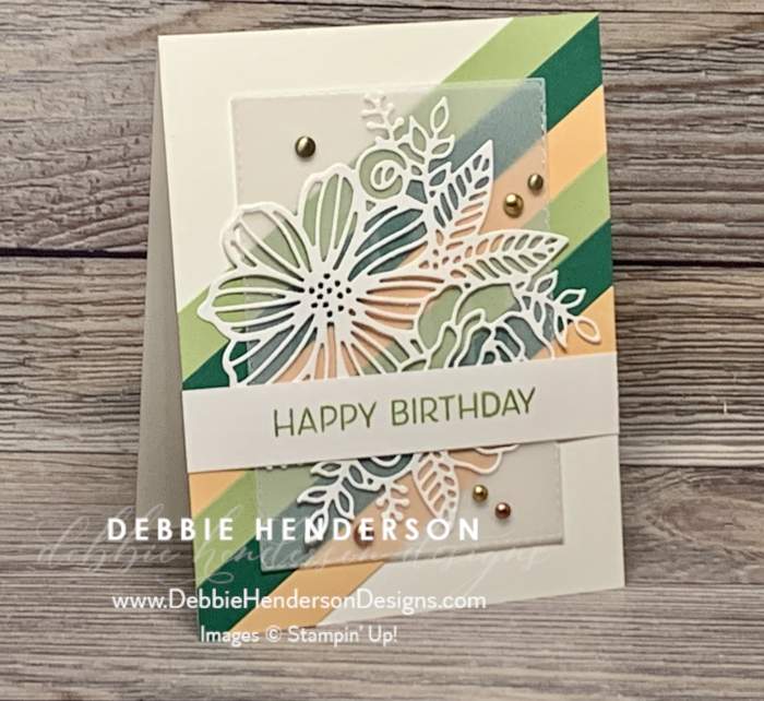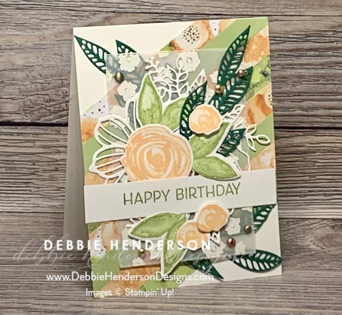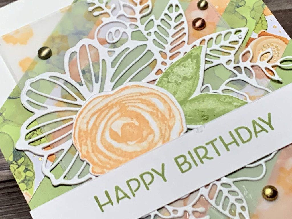 I also added a layer of Vellum Cardstock and a beautiful diecut and stamped images from the Artistically Inked Bundle. The diecuts are so pretty aren’t they? You can see individual photos below and I have also included my video.